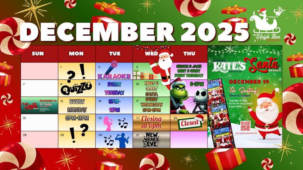 The Nightmare Before Christmas inspired Klondike Kate's Pop-Up Holiday Bar on Main Street in Newark, DEWelcome to the Holiday Pop Up Bar at Klondike Kate’s, the perfect spot to celebrate the holiday season. Located in the heart of Newark, Delaware, The Sleigh Bar offers more than just a typical Christmas Bar experience